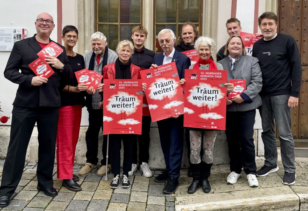 „Endlich beginnt der Countdown zu den Murnauer Horváth-Tagen 2025“, sagte Gabi Rudnicki, die Gesamtleiterin des Festivals bei der Vorstellung des Programmhefts im Rahmen einer Pressekonferenz. Sie dankte allen Sponsoren und Förderern für ihre finanzielle Unterstützung, ohne die dieses weltweit einzige Festival zu Ehren des Weltliteraten nicht durchgeführt werden könne. Dankbar sei sie auch für vielen Kooperationspartner, darunter Schulen, Kunterbunt e.V. und die Evangelische Kirchengemeinde Murnau. So erlebe man Horváth nicht nur auf der Theaterbühne, sondern ganz in seinem Sinne an vielen verschiedenen Orten und ganz nah bei den Menschen.