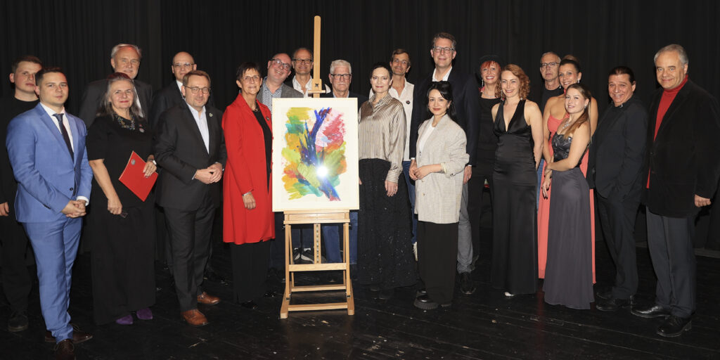 Ein Highlight jagte das nächste: In ihrer Dankesrede für den Förderpreis überraschte Milena Aboyan mit dem Hinweis, dass sie unter anderem durch die Lektüre der Horváth-Texte Deutsch gelernt habe; Ingrid Lausund bedankte sich für den Ödön-von-Horváth-Preis 2025 mit einer Lesung aus ihrem bewegenden Text „Der geflügelte Froschgott“ und amüsierte sich zusammen mit dem Publikum über die skurril-witzige Laudatio von Bjarne Mädel, der per Videobotschaft präsent war. Höchst erfreut nahm sie ihren Preis – ein Gemälde des hiesigen Künstlers Bernd Zimmer – von ihm persönlich entgegen. Stimmgewaltig lockerten die „Teufels-Engel“ Verena Nießner, Antonia Schedler, Ozzy Thompson und Schauspielerin Karoline Troger den Abend mit Songs aus der Inszenierung „Himmelwärts“ auf und entführten gemeinsam mit Zauberweltmeister Gaston Florin das Publikum zu „Somewhere over the rainbow“ in eine magische Welt.