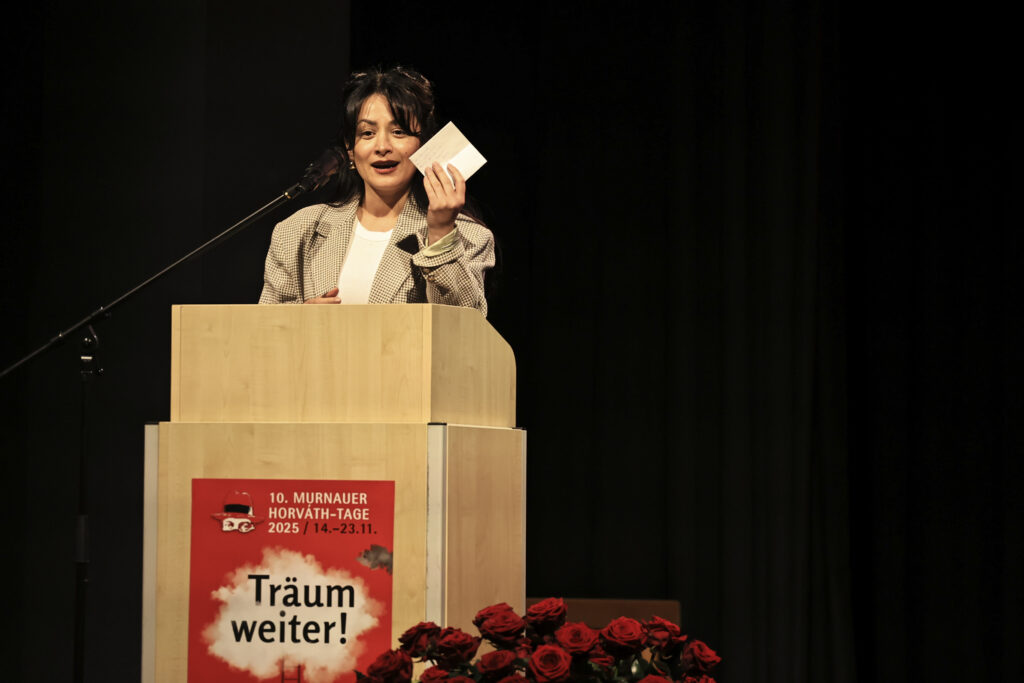 Bei der Eröffnung der Murnauer Horváth-Tage 2025 vor wenigen Tagen erhielt die Drehbuchautorin und Regisseurin Milena Aboyan den Ödön-von-Horváth-Förderpreis. Heute, am 25.11.2025, dem internationalen Tag gegen Gewalt an Frauen, und am Mittwoch, 03.12.2025 ist ihr ebenfalls preisgekrönter Film „Elaha“ im Griesbräu-Kino Murnau zu sehen (Beginn jeweils 18.00 Uhr).