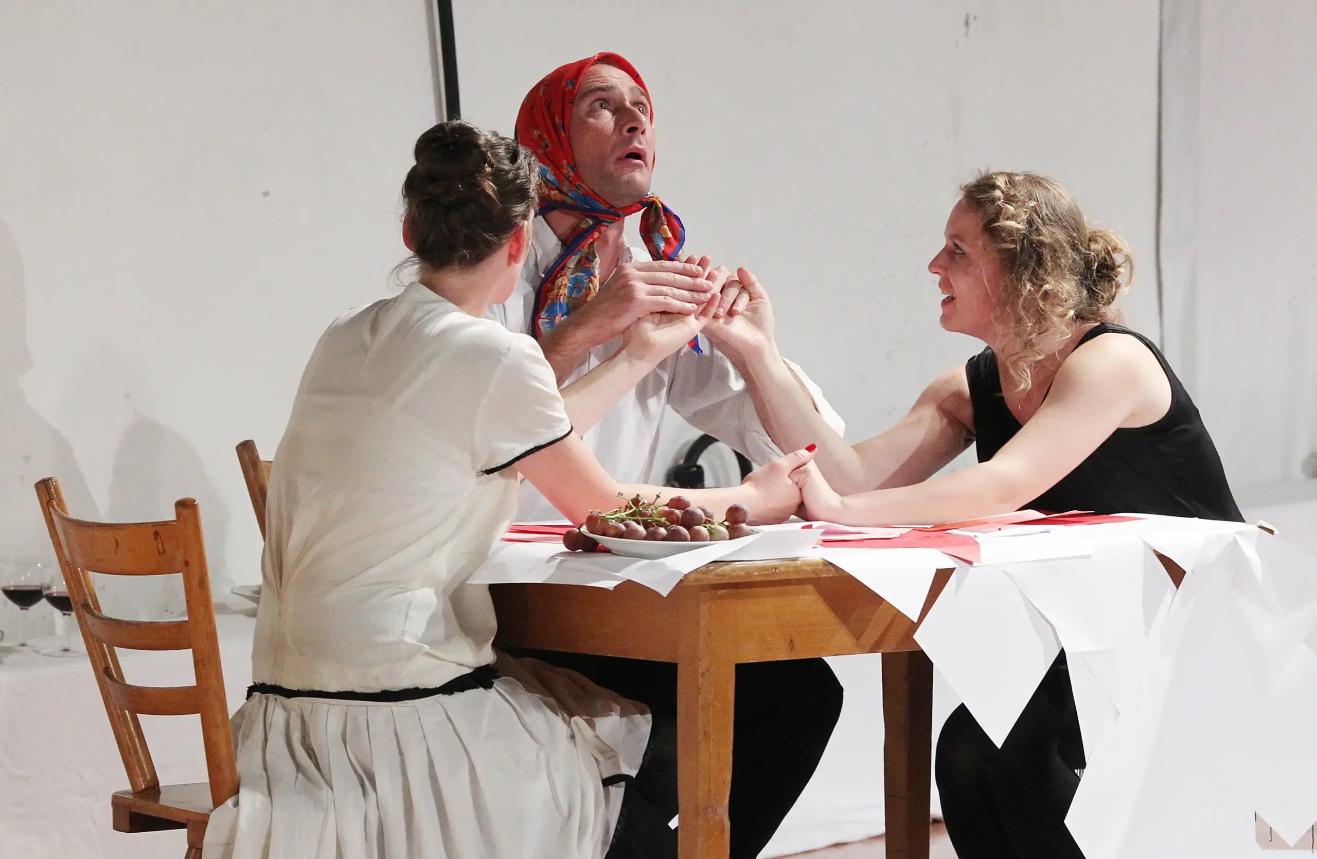 3 Jule Torhorst, Matthias Gerstner, Silvia Kemper in Alfred Döblin „Die beiden Freundinnen und ihr Giftmord“, Foto: Christian Kolb, © Ödön-von-Horváth-Gesellschaft