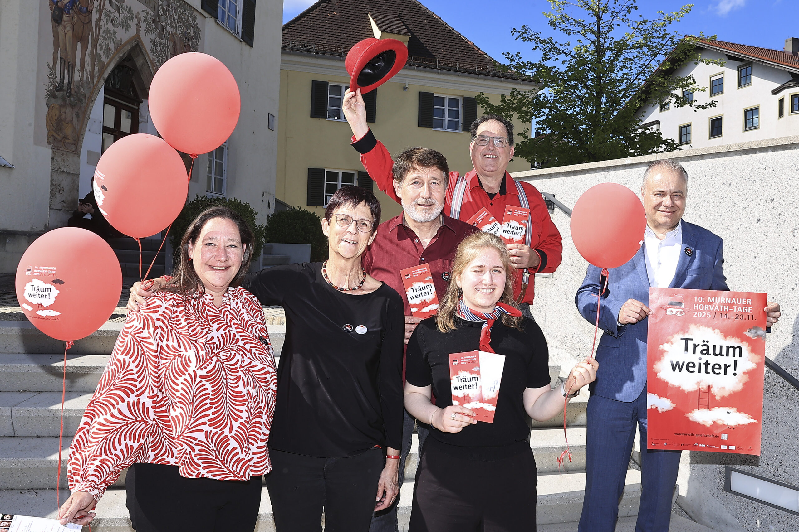 Die Mitgliederversammlung bestätigte 2023 die Vorsitzenden Gabi Rudnicki (1. Vorsitzende, 2.v.l.) und Georg Büttel (2. Vorsitzender,li.) ebenso deutlich im Amt wie Schriftführer Dominik Meyer (2.v.re) und die Beisitzenden Harald Kühn (re.), und Matthias Kratz (3.v.li). Neue Schatzmeisterin ist Martina Strauß (3.v.re.). Ebenso einstimmig bestimmt wurden Petra Hebeisen-Unruh und Jonas Meyer-Wegener als Beisitzer sowie die beiden Rechnungsprüferinnen Irmtraud Karlitschek und Heike Zimmermann. Zuversichtlich geht die Vorstandschaft an die Planungen für die kommenden vier Jahre. Im November 2025 stehen die nächsten Murnauer Horváth-Tage an.